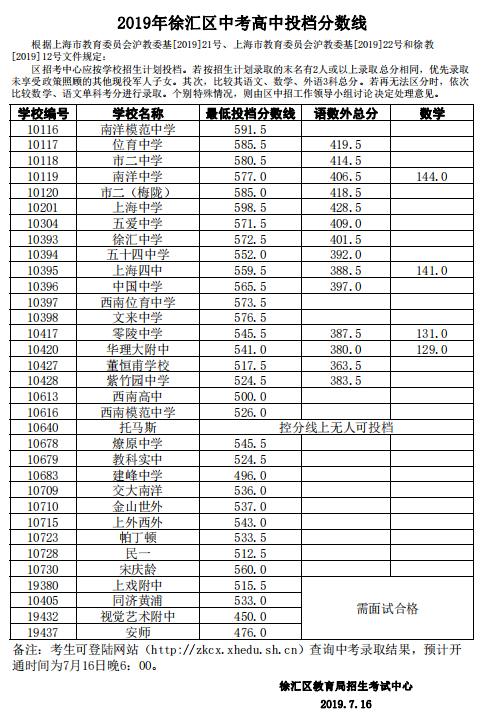 本文关键字: 2019中考录取分数线 2019徐汇区中考