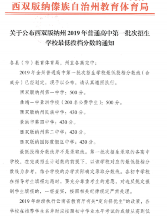 本文关键字: 2019中考录取分数线 2019西双版纳中考