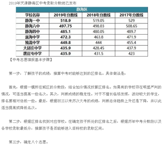 新东方在线中考频道整理了《天津静海区2019中考录取分数线》,供同学们和家长参考。