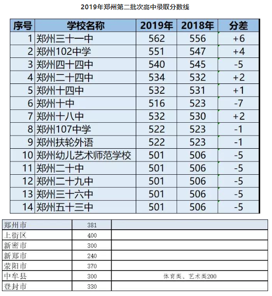 河南郑州2019中考第一批次录取分数线