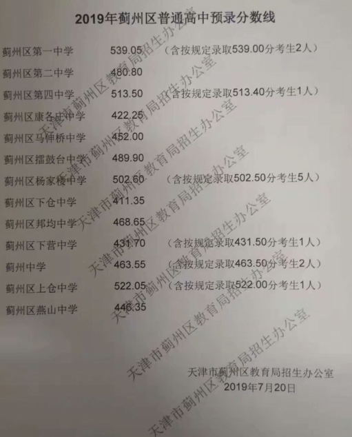 新东方在线中考频道整理了《天津蓟州区公办高中2019中考录取分数线》,供同学们和家长参考。
