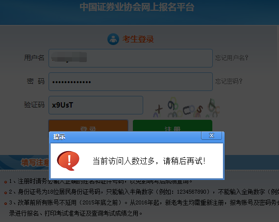 每次证券从业考试准考证打印刚开始阶段,会有大量的打印请求,会造成服务器卡的现象,大家不要担心,可以错过高峰期打印。本次考试准考证打印截止时间为12月1日16点,提前打印好就可以!报考了多科的建议打印多张,防止考场收准考证。