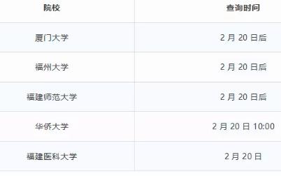 另外,小编为同学们整理了福建各院校成绩查询时间,提供给同学们参考!