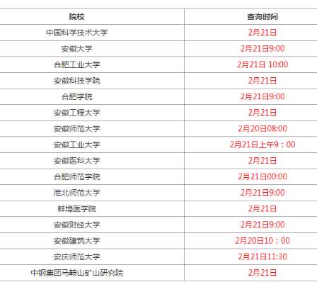 安徽其余院校均在21号查成绩,具体时间安排如下,