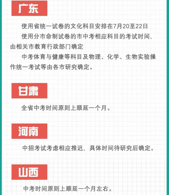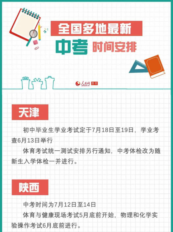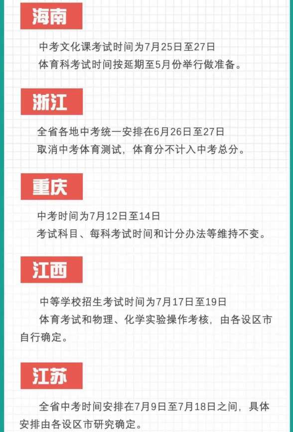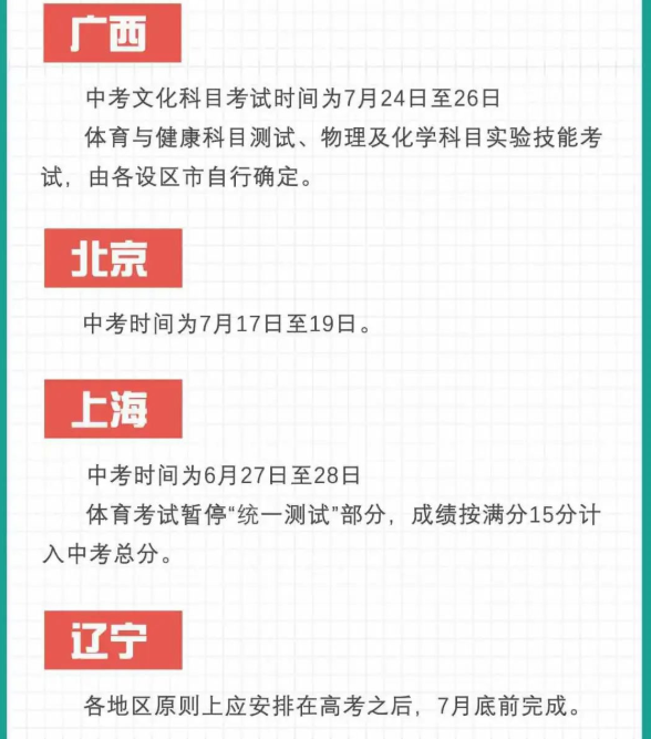 部分省市陆续公布了2020中考时间安排,新东方在线中考频道整理了《各省市2020中考时间安排一览表》,供同学们和家长参考。