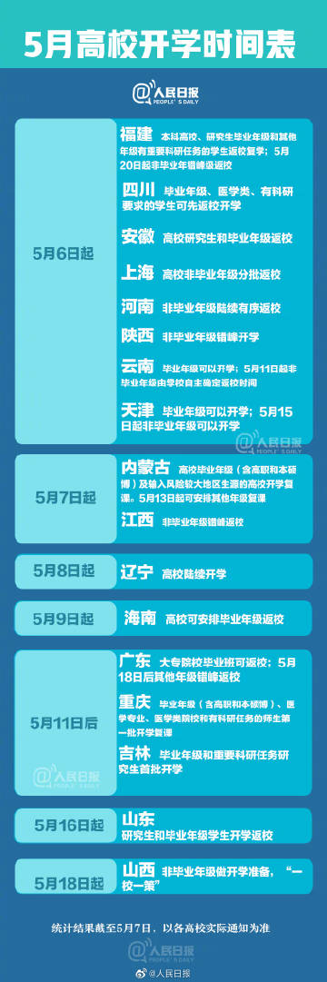 2020年全国高校5月开学时间表