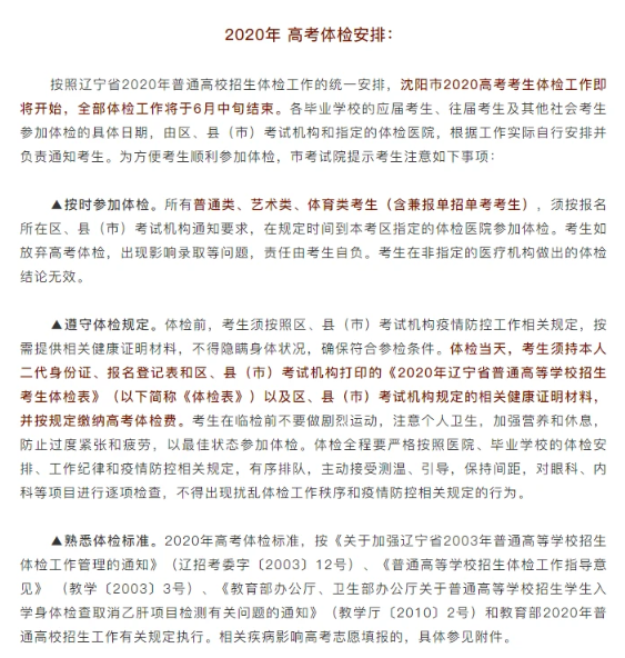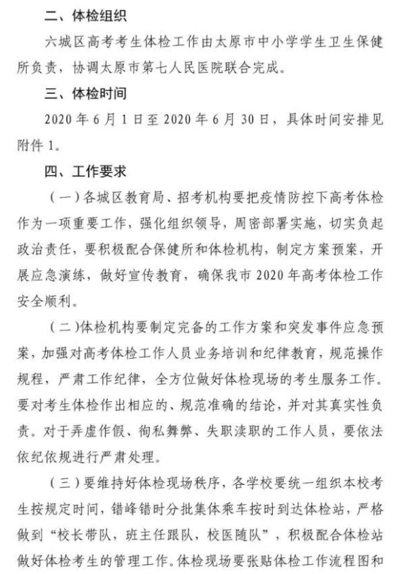 高考体检工作时间安排为5月上旬开始,原则上6月中旬前完成。