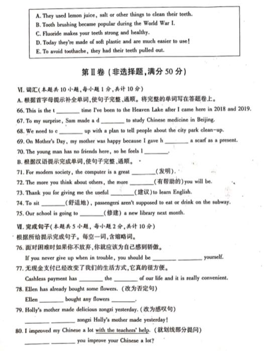 2020新疆中考英语试题及答案