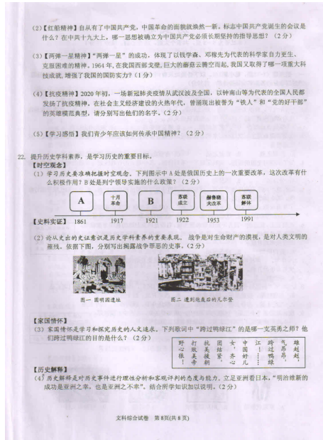 2020贵州黔东南中考历史试题及答案