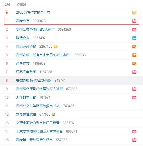 在大家的集体努力下,高考数学在考后30分钟后喜提热搜第一名。