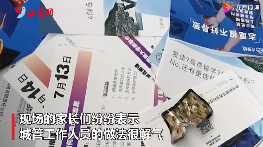 很多城管在一边销毁传单的时候,一边也在感叹:考生们刚刚才开始考试,你们就盼着人家复读,能不能盼点好的?