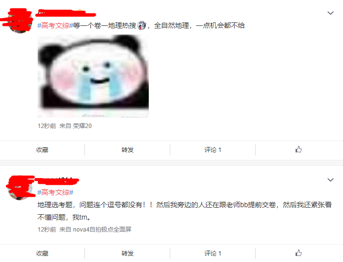 今天是高考第二天,上午的2020全国二卷高考文综已经考完了,正如往年一般,网友又开始吐槽起全国卷高考文综试卷难度,你也来参与吧。有个网友已经在吐槽地理了。