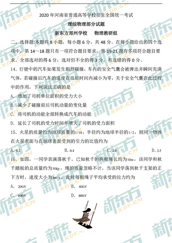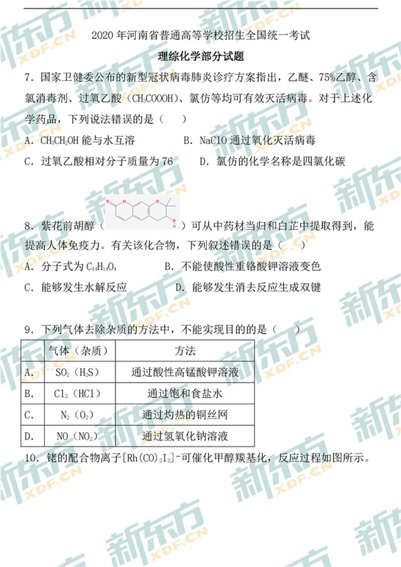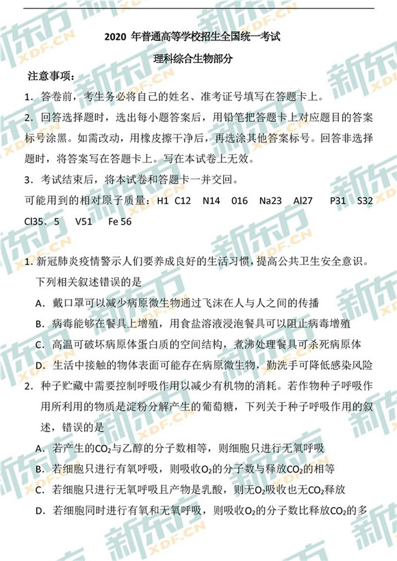 高考试题及答案是同学们在高三学习中必备的学习资料之一,2020高考已经结束,新东方在线高考频道整理了《2020全国一卷高考理综试题及答案》,供同学们和家长参考。