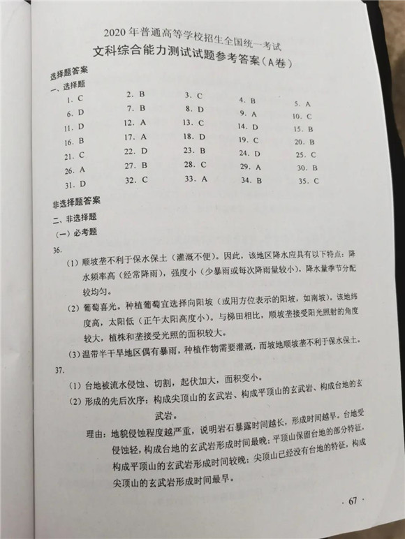 2020全国卷一高考文综试题及答案