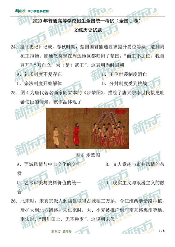 高考试题及答案是同学们在高三学习中必备的学习资料之一,2020高考已经结束,新东方在线高考频道整理了《2020河北省高考文综试题及答案》,供同学们和家长参考。