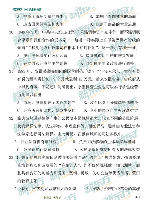 高考试题及答案是同学们在高三学习中必备的学习资料之一,2020高考已经结束,新东方在线高考频道整理了《2020全国一卷高考文综试题及答案》,供同学们和家长参考。