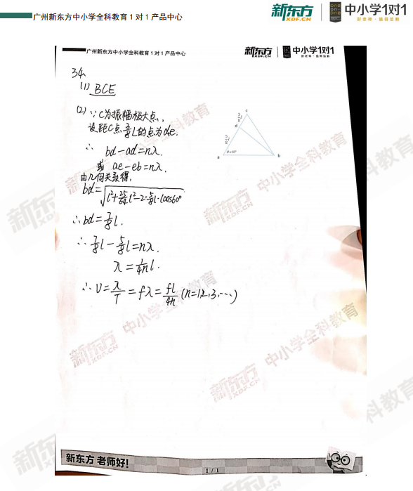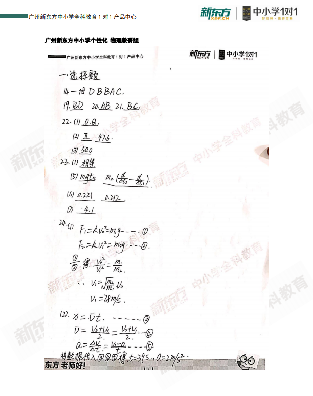 广州新东方中小学为大家带来2020全国一卷高考理综物理答案(pdf版),请同学们与家长先睹为快。