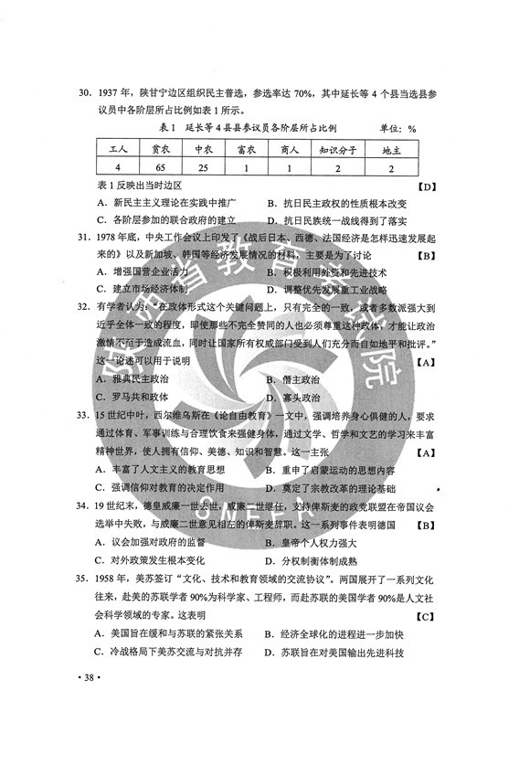【官方版】2020内蒙古高考文综试卷/答案/解析