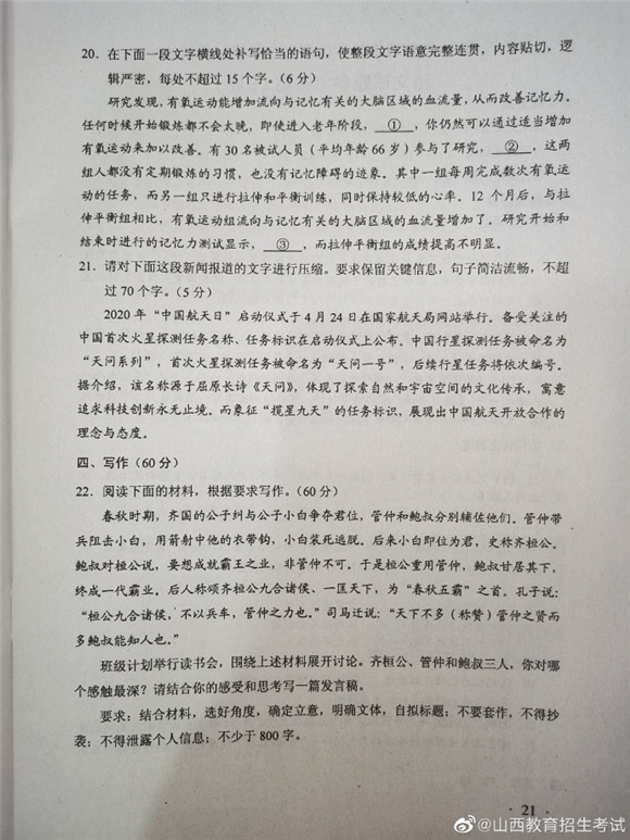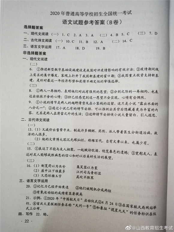 2020福建高考语文试卷及答案(AB卷)—完整版