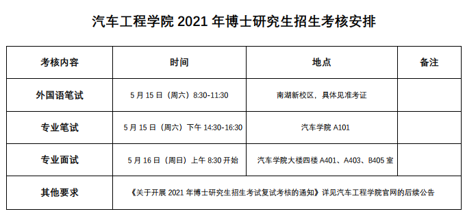 2021年博士研究生招生入学考试工作已经展开,新东方在线考博频道将为广大2021考博考生发布转载各博士招生单位发布的2021年博士研究生招生简章、考博专业目录、考博参考书目、及导师联系方式,以下是2021年武汉理工大学汽车工程学院博士招生考核安排。