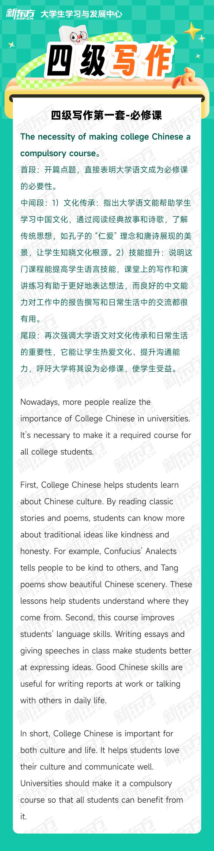 2025年6月英语四级考试就在今天中午顺利完成,小编祝愿大家都能获得佳绩!相信有些同学想对下四级答案,预估下四级成绩。新东方四六级老师们正在《2025年6月英语四级作文真题范文:必须课(新东方)》,小编会及时发布出来。