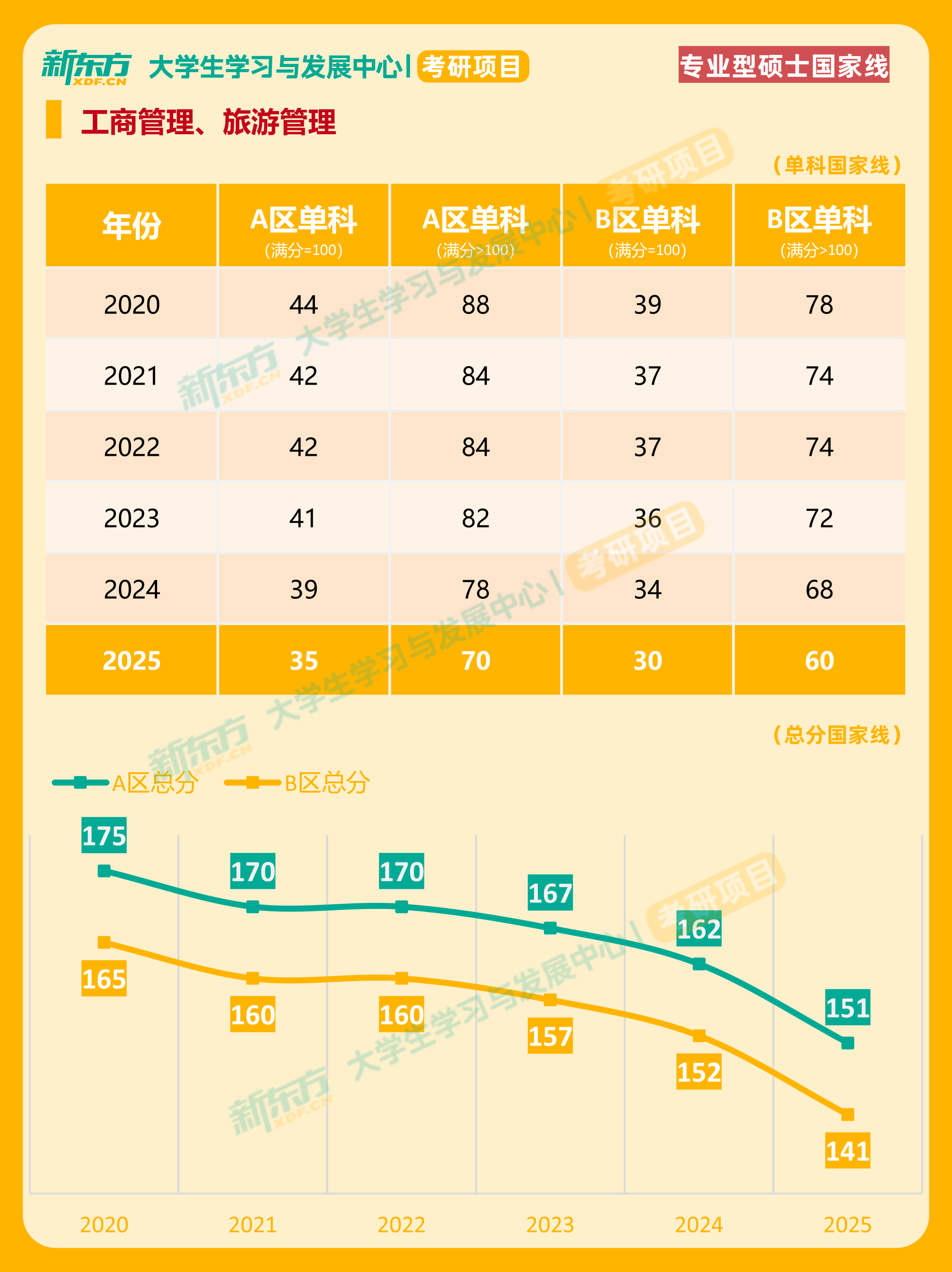 2025年A区:151分(英语35、管综70);B区:141分(英语30、管综60)