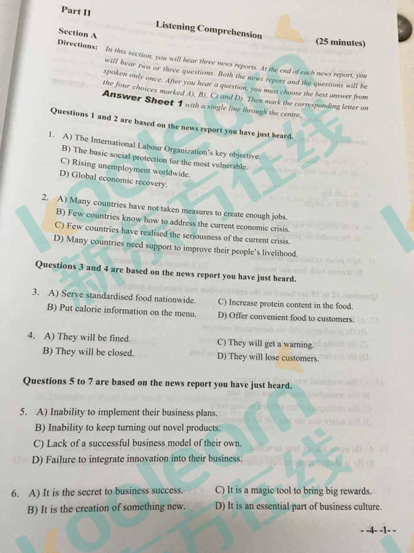 来源 : 网络 06月18日 11:20 关键字 : 2016年6月英语四级听力真题试卷