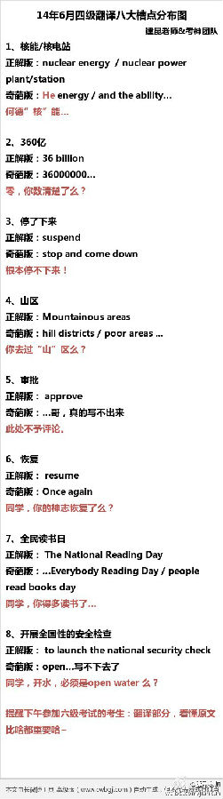来源 : 互联网 06月14日 16:04 关键字 : 英语四级翻译八大槽点 英语四级翻译