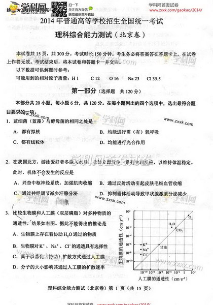 来源 : 学科网 06月09日 13:46 关键字 : 北京2014高考试题 北京2014高考理科综合试题
