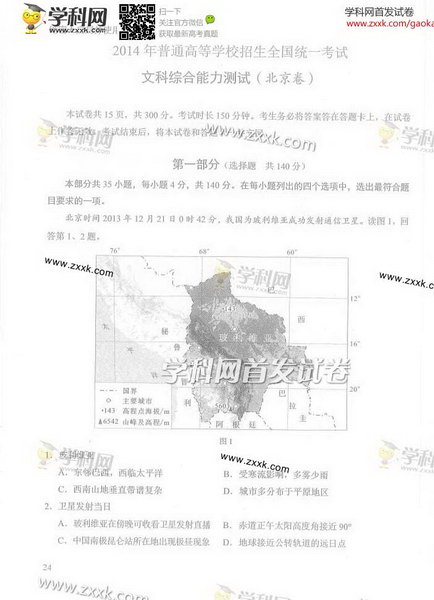 来源 : 学科网 06月09日 14:48 关键字 : 北京2014高考试题 北京2014高考文科综合试题