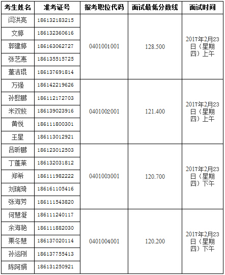 来源:国家公务员考试录用系统01月18日 17:12 关键字: 2017国家公务员考试 面试人员名单