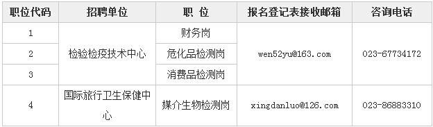重庆出入境检验检疫局是国家质检总局驻渝机构。根据事业发展需要,其下属事业单位检验检疫技术中心(简称技术中心)、重庆国际旅行卫生保健中心(简称保健中心)2015年面向社会公开招聘事业...