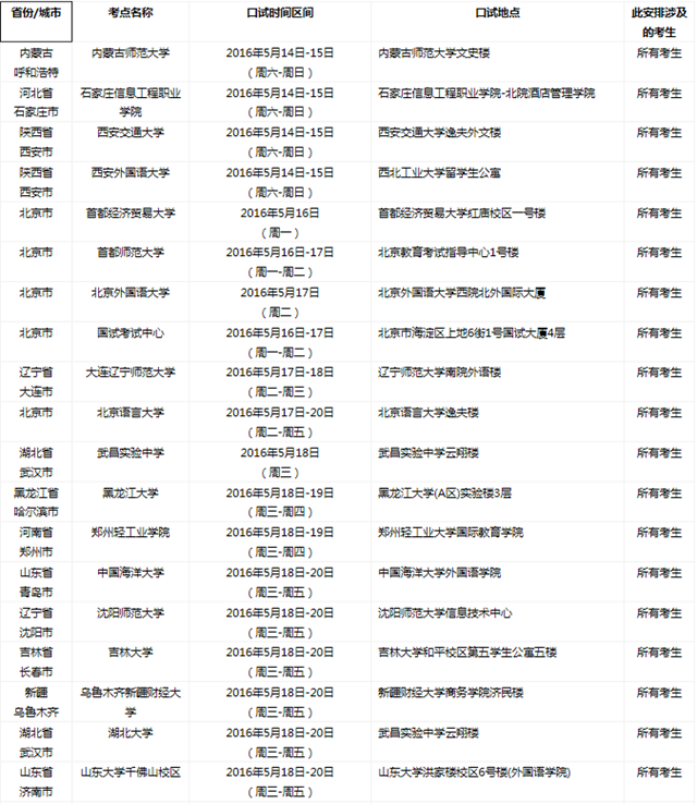 接英国文化教育协会通知,报考2016年6月4日 天津外国语大学雅思考试的所有考生的口语考试将安排在2016年5月31日(星期二)或者2016年6月1日(星期三)或者2016年6月2日(星期四)或者2016年6...
