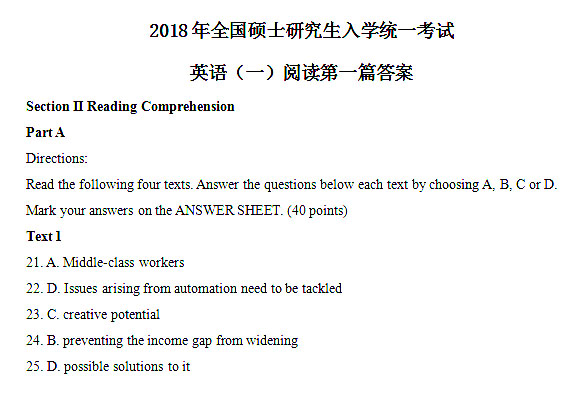 来源 : 网络 12月23日 19:03 关键字 : 2018年考研英语二阅读理解答案