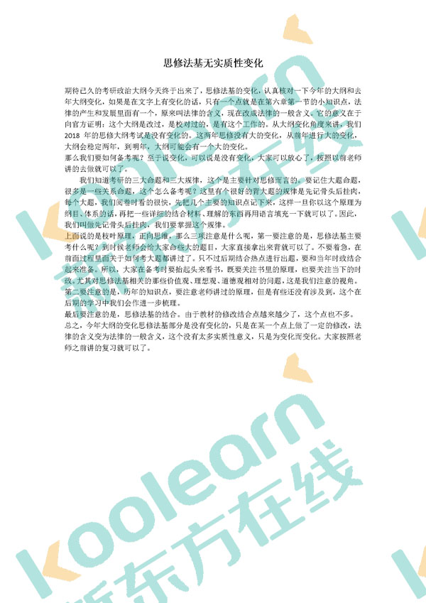 2018考研政治大纲解析:思修法基无实质性变化 2018考研大纲即将发布,新大纲将会出现哪些变动?面对新考纲我们该如何应对?新东方在线考研名师第一时间权威解析大纲变化,指导考生后续复...