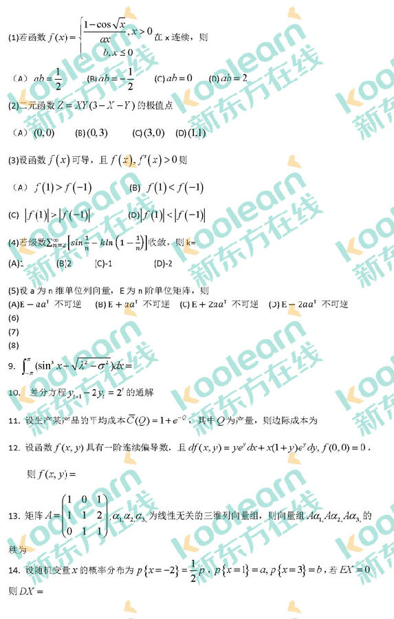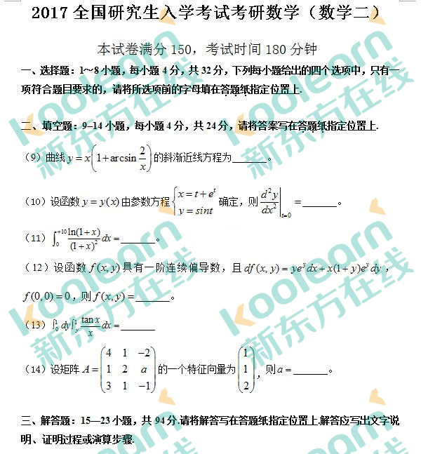 来源 : 网络 12月25日 13:00 关键字 : 2017考研数学真题 2017考研数学答案