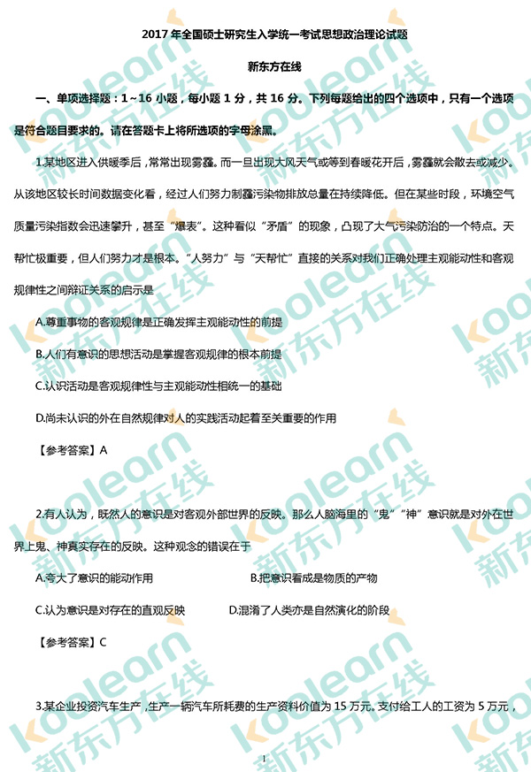 来源 : 网络 12月24日 11:57 关键字 : 2017考研政治试题 2017考研政治答案