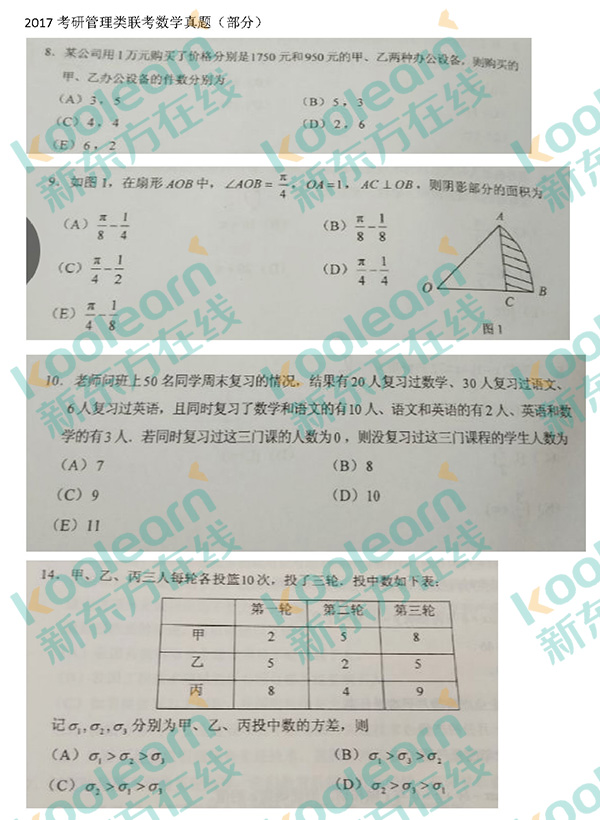 来源 : 网络 12月24日 11:31 关键字 : 2017考研管理类联考数学答案下载 考研真题