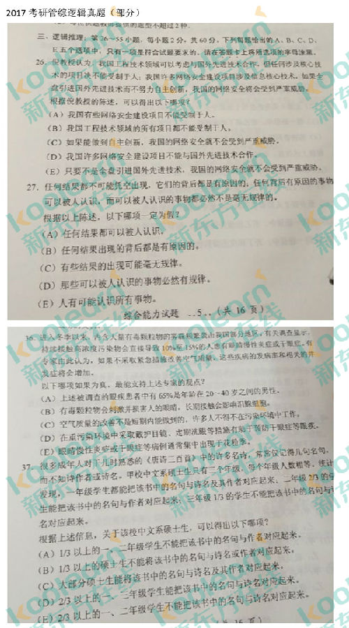 来源 : 网络 12月24日 11:31 关键字 : 2017考研管理类联考逻辑答案下载 考研真题