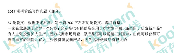 来源 : 网络 12月24日 11:31 关键字 : 2017考研管理类联考写作范文 考研真题