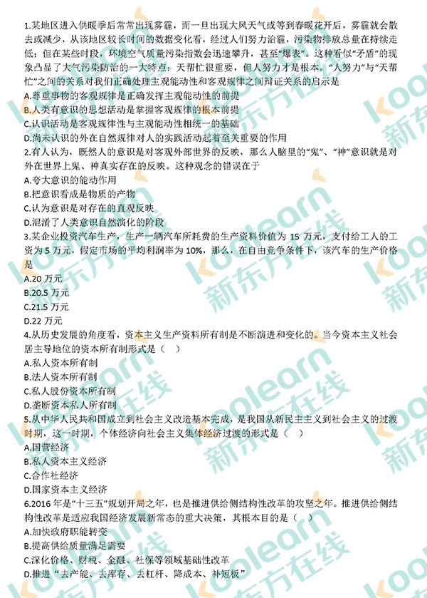 来源 : 网络 12月24日 11:31 关键字 : 2017考研政治单选题真题及答案解析