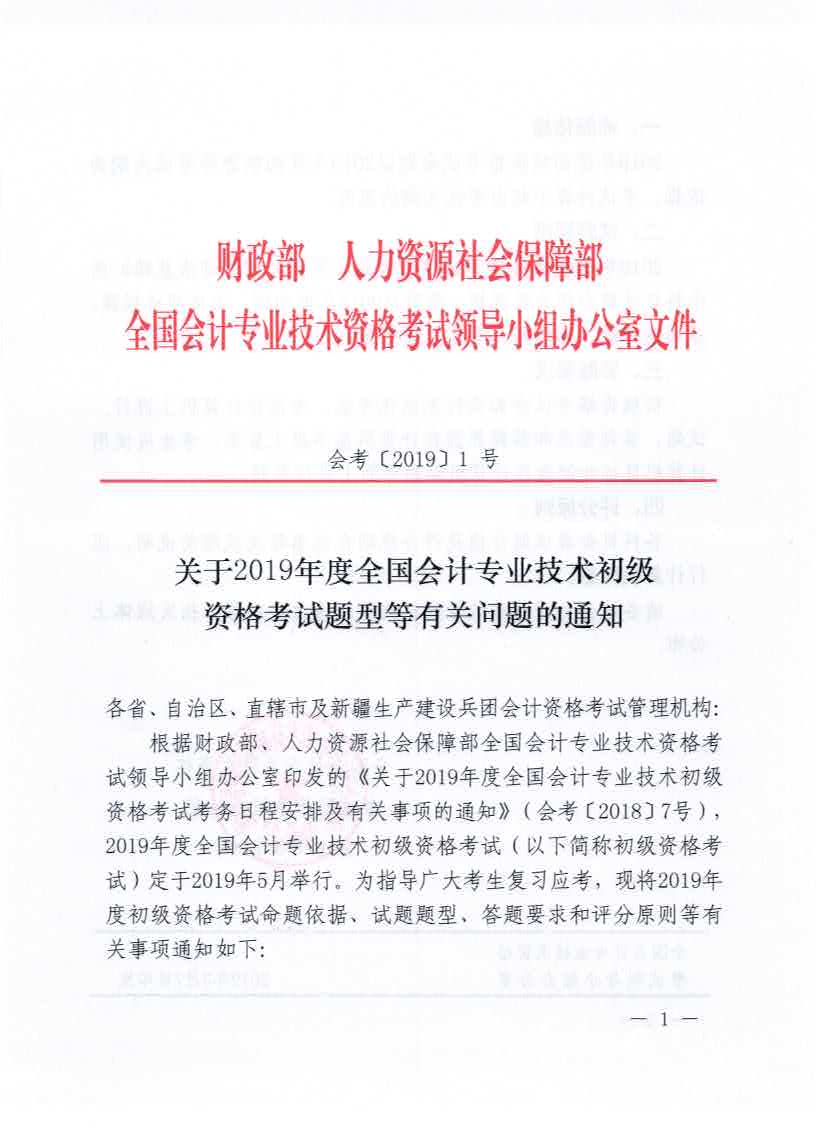 为做好2019年度全国会计专业技术初级资格考试(以下简称初级资格考试)工作,确保初级资格考试安全平稳顺利进行,经研究,现将2019年度全国初级资格考试具体时间等有关事项通知如下: ...