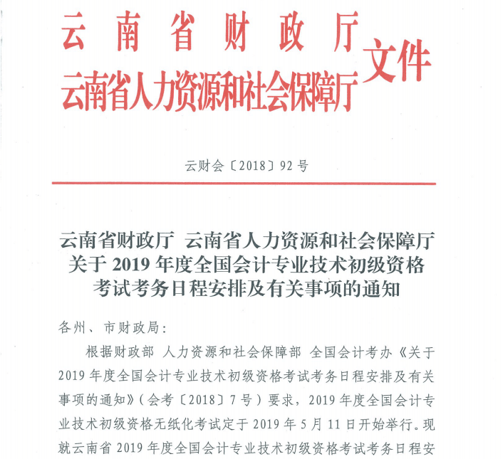 2018年11月1日-2018年11月30日是云南省2019年初级会计考试报名时间,网上缴费截止时间为2018年12月5日,请云南省2019年初级会计职称考生注意报名时间。【微信订阅,微信搜索“职上会计人...