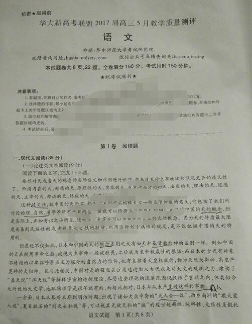 2017年华大新高考联盟高三5月质量测评正在考试,新东方在线高考网小编整理了2017年华大新高考联盟高三5月质量测评试题及答案,供同学们参考学习。2017年华大新高考联盟高三5月质量测评试...