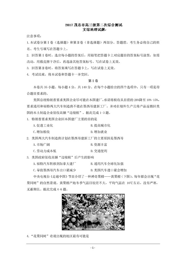 2017茂名二模于4月11-12日考试,为方便同学们复习,新东方在线高考网小编整理了2017茂名二模试题及答案汇总,供同学们参考学习。点击查看>>全国各省市2017高三二模(高三二诊)试题及答案...
