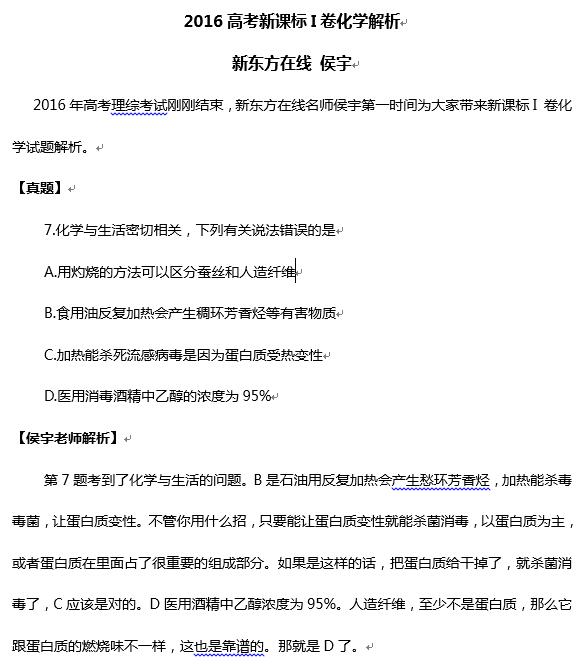 2016新课标I卷高考化学考试已结束,新东方在线高考网邀请新东方高考名师侯宇为大家第一时间点评2016新课标I卷高考化学试题,更多2016高考试题及答案,请查看2016年高考试题及答案专题! ...