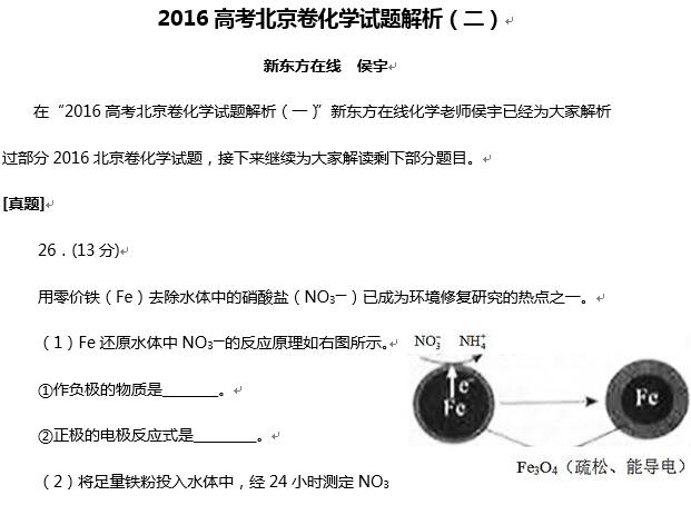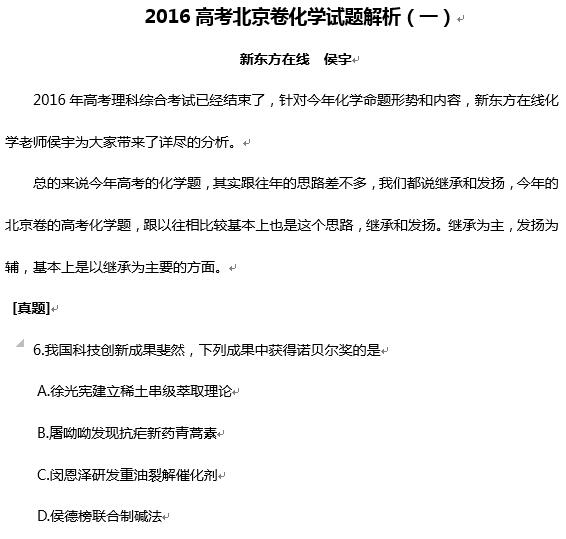 2016高考北京卷化学考试已结束,新东方在线高考网邀请新东方高考名师侯宇为大家第一时间点评2016高考北京卷化学试题,更多2016高考试题及答案,请查看2016年高考试题及答案专题! 新东...