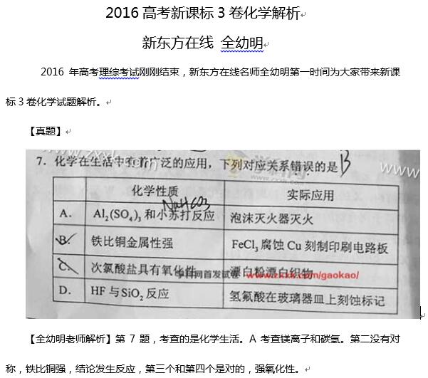 2016高考新课标3卷化学考试已结束,新东方在线高考网邀请新东方高考名师全幼明为大家第一时间点评2016高考新课标3卷化学试题,更多2016高考试题及答案,请查看2016年高考试题及答案专题!...