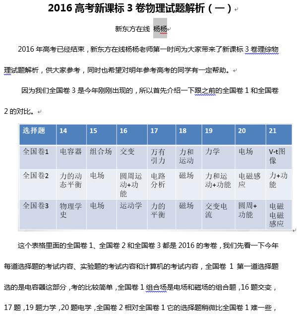 2016高考新课标3卷物理考试已结束,新东方在线高考网邀请新东方高考名师杨杨为大家第一时间点评2016高考新课标3卷物理试题,更多2016高考试题及答案,请查看2016年高考试题及答案专题! ...
