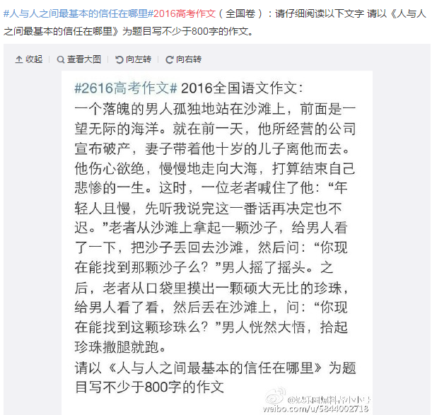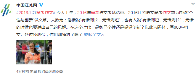 来源 : 网络 06月07日 12:01 关键字 : 2016江苏高考作文 2016高考作文